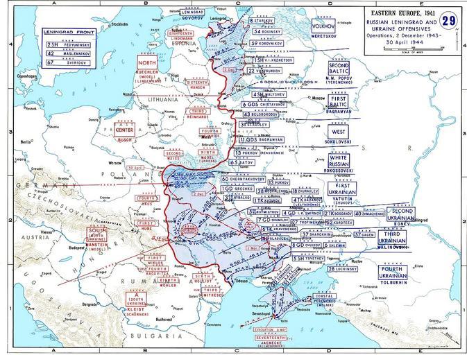 Keywords: April1944.jpg From en-wiki Soviet Advances 2 December 1943 to 30 April 1944 Совјетска нап едовања од 2 децемб а 1943 до 30 ап ила 1944 Author - Unknown US Army Cartographer Source - The Department of History United States Military Academy http //www dean usma edu/history/ Quotation of the permission Frank Martini gave to User Redtony after he was asked for permission to use The Department of History United States Military Academy contents in the Wikipedia Tony The maps found on the web site may be used for the purposes stated below We would kindly ask that credit be given to The Department of History United States Military Academy If you reguire higher resolution images suggest you contact one od the sources cited on our site Best of luck with the project Frank Martini Cartographer Department of History United States Military Academy Webpage http //www dean usma edu/history/web03/atlases/ww2 20europe/ww2 20europe 20war 20index htm World War II File is under US Government Copyright PD-USGov Maps of the Eastern Front in World War II Maps of the United States Military Academy Maps of Ukraine in World War II |