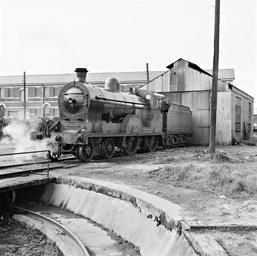 | Keywords: train engine steam turn table turntable sheds trains railways railroads c.i.é cié coras iompair éireann corasiompairéireann saturday 22nd april 1961 1960s sixties james p. o'dea jamespodea 4-4-0 440 tender locomotive engine sheds enginesheds cié 17 cié17 g.n.r. gnr great northern railway greatnorthernrailway general stores generalstores engine wheels enginewheels national library of ireland nationallibraryofireland o'dea photographic collection odeaphotographiccollection blackandwhite monochrome vehicle railroad outdoor black and white An engine (CIE 171) going onto a turn table at Dundalk, Co. Louth. Flying Snail told us: "In the background is the GNR's 'general stores' building, which is a little run down these days. A lot of CIE's steam locos were scrapped in the Dundalk works and this may explain the number of engine wheels dumped in the background." Date: Saturday, 22 April 1961 NLI Ref.: ODEA 25/55 An engine (CIE 171) going onto a turn table at Dundalk, Co. Louth. Flying Snail told us: "In the background is the GNR's 'general stores' building, which is a little run down these days. A lot of CIE's steam locos were scrapped in the Dundalk works and this may explain the number of engine wheels dumped in the background." Date: Saturday, 22 April 1961 NLI Ref.: ODEA 25/55 |