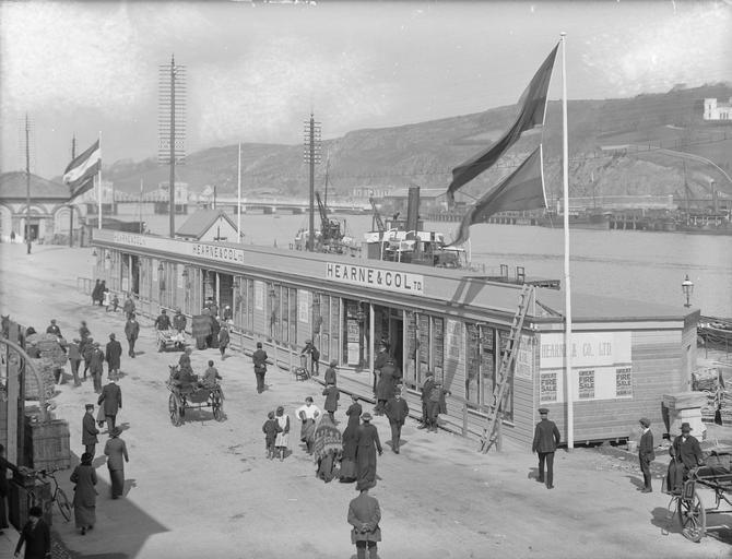 | Keywords: hearne's hearnes hearne & co. ltd. hearnecoltd ireland munster the quay thequay great fire salvage sale greatfiresalvagesale fire friday 23rd april 1915 1910s a.h. poole ahpoole arthur henri poole arthurhenripoole poole collection poolecollection glass negative glassnegative shops portlairge steam dredger steamdredger redmond bridge redmondbridge mudboat flemings castle flemingscastle suir dublin dockyard co. dublindockyardco butter market buttermarket side car sidecar knockane villa knockanevilla soldier barefoot children barefootchildren children waterford national library of ireland nationallibraryofireland blackandwhite monochrome snow outdoor black and white In a fine example of "You can't keep a good company down", here is Hearne's temporary new shop on the quayside in Waterford, in business exactly 3 weeks after a devastating fire on Friday, 2 April. The Great Fire Salvage Sale was for 4 days only, and began on the day this photo was taken. The boat behind Hearne's shop has been identified by ofarrl as the Portlairge, a steam dredger known around Waterford as the Mudboat: "Built in 1907 by the Dublin Dockyard Co. she was the last working steamship in Ireland when she was retired in 1980." Meanwhile Niall McAuley found the Portlairge at its new home in Saltmills, Co. Wexford. Date: Friday, 23 April 1915 NLI Ref.: P_WP_2607 In a fine example of "You can't keep a good company down", here is Hearne's temporary new shop on the quayside in Waterford, in business exactly 3 weeks after a devastating fire on Friday, 2 April. The Great Fire Salvage Sale was for 4 days only, and began on the day this photo was taken. The boat behind Hearne's shop has been identified by ofarrl as the Portlairge, a steam dredger known around Waterford as the Mudboat: "Built in 1907 by the Dublin Dockyard Co. she was the last working steamship in Ireland when she was retired in 1980." Meanwhile Niall McAuley found the Portlairge at its new home in Saltmills, Co. Wexford. Date: Friday, 23 April 1915 NLI Ref.: P_WP_2607 |