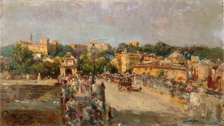 | Keywords: Apunte de Roma, de Tomás Martín Rebollo (Museo del Prado).jpg La obra representa el Ponte Sisto de la ciudad de Roma la capital de Italia que era conocido anteriormente como el Puente de Agrippa circa 1905 1910 Óleo sobre táblex Size cm 27 16 Institution Museo del Prado Depositado en el Institution Museo de Bellas Artes de Badajoz https //www museodelprado es/coleccion/obra-de-arte/apunte-de-roma/d346d40e-91af-4676-91e8-9223a4ce851d accession number P06032 https //content1 cdnprado net/imagenes/Documentos/imgsem/d3/d346/d346d40e-91af-4676-91e8-9223a4ce851d/918120e7-5603-4f82-9b46-bc788507247f jpg PD-old-100 Ponte Sisto Rome Paintings of Rome Tomás Martín Rebollo Spanish 20th-century paintings in the Museo del Prado Paintings in the Museo de Bellas Artes de Badajoz 1900s paintings in Spain |