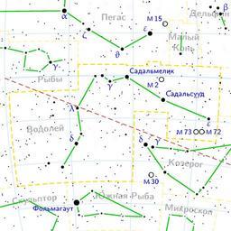 | Keywords: Aquarius constellation map ru lite.png en Aquarius constellation map on Russian ru Ка та созвездия Водолея на усском языке Copyright 2005 Denis Ibaev It was created by Denis Ibaev using the program PP3 on 30th November 2005 At http //pp3 sourceforge net PP3's homepage you also get the input scripts necessary for re-compiling the map The yellow dashed lines are constellation boundaries the red dashed line is the ecliptic and the shades of blue show Milky Way areas of different brightness The map contains all Messier objects except for colliding ones The underlying database contains all stars brighter than 6 5 All coordinates refer to equinox 2000 0 The map is calculated with the equidistant azimuthal projection the zenith being in the center of the image The north pole is to the top The horizontal lines of equal declination are drawn for 0° +10° +20° etc The lines of equal rectascension are drawn for all 24 hours Towards the rim there is a very slight magnification and distortion Constellations maps russian |