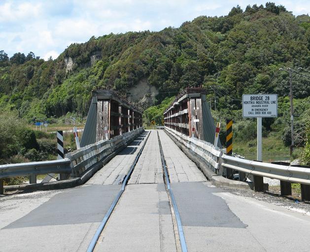 | Keywords: Arahura River bridge.jpg en The Arahura River road/rail bridge view from the southern side Own Alan Liefting 2007-12-23 West Coast Region Railway bridges in New Zealand Road-railway bridges Wooden railway bridges State Highway 6 New Zealand One lane bridges in New Zealand Files by Alan Liefting |