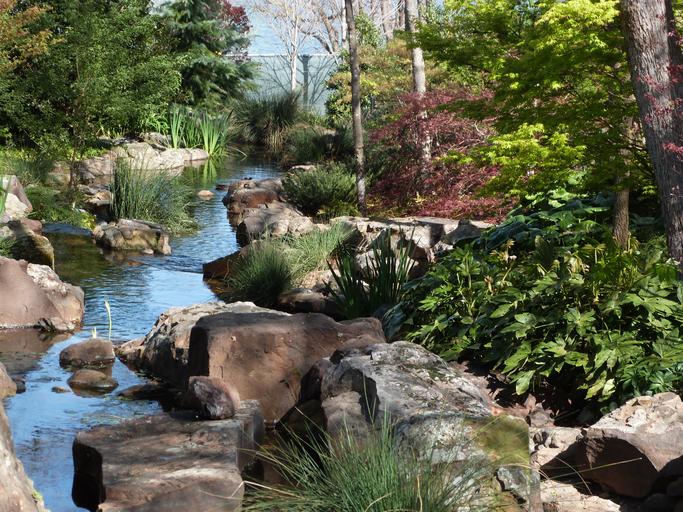 Keywords: arboretum creek fatsia japanese maple spring scenic stream cool