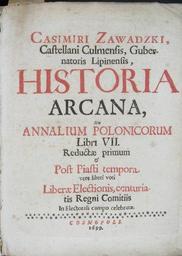 | Keywords: ArcanaHistory.jpg ru Книга Kazimierz Zawadzki «Historia arcana seu annalium polonicorum » «Тайная исто ия или польские анналы » изданная во Ф анкфу те 1699 http //www pbi edu pl/book_reader php p 51797 Kazimierz Zawadzki 1699 PD-old-100 1699 books 1699 in Poland |