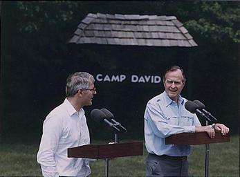Keywords: Arcbushmaj.jpg en British Prime Minister John Major with US President George H W Bush at Camp David bg Б итанския п емие Джон ейджъ и П езидента на САЩ Джо дж У Буш Кемп Дейвид САЩ http //en wikipedia org/wiki/File Arcbushmaj JPG David Valdez 1992-06-07 John Major George H W Bush with British dignitaries PD-USGov