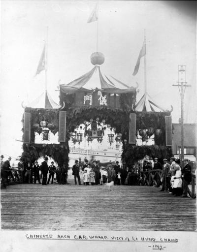| Keywords: blackandwhite monochrome outdoor black and white DESCRIPTION: A Chinese street arch erected at the C.P.R. Station at the foot of Granville street for the visit of Li Hung Chang. The bow of the Empress of China; is in the background VPL Accession Number: 13525 Date: 1897 Photographer/Studio: Unknown SUBJECTS: Chinese Canadians, Arches, Visits of state Organization: Canadian Pacific Railway Company Location: British Columbia - Vancouver - Granville Street More information on our historical photograph collection: www.vpl.ca/historicalphotos DESCRIPTION: A Chinese street arch erected at the C.P.R. Station at the foot of Granville street for the visit of Li Hung Chang. The bow of the Empress of China; is in the background VPL Accession Number: 13525 Date: 1897 Photographer/Studio: Unknown SUBJECTS: Chinese Canadians, Arches, Visits of state Organization: Canadian Pacific Railway Company Location: British Columbia - Vancouver - Granville Street More information on our historical photograph collection: www.vpl.ca/historicalphotos |