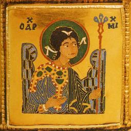 | Keywords: Archangel Michael on the Holy Crown of Hungary.jpg author XIth century object history credit line accession number own scanned by Szilas from A magyar Szent Korona by Tóth Endre Szelényi Károly Kossuth 2000 Budapest PD-old-100 Holy Crown of Hungary Icons of Michael from Deesis |