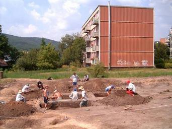 Keywords: Archelogic site100.jpg en Komin archelogic site Hlavní crossing Brno Czech archelogic site were destroyed by bulding garage own I Sáček senior Archaeology in Brno-Komín
