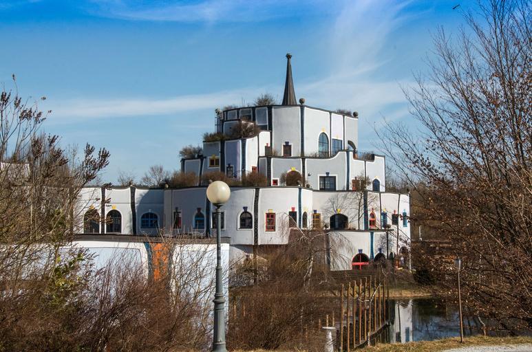 Keywords: architecture bridge house on water sky spire