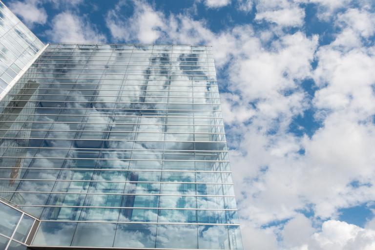 Keywords: architecture building modern glass steel facade blue white grey transparency mirroring