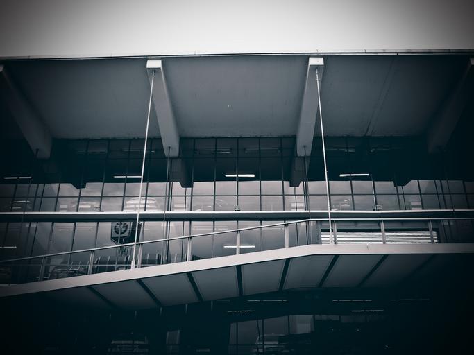 Keywords: architecture driveway multi storey car park ramp glass black white düsseldorf