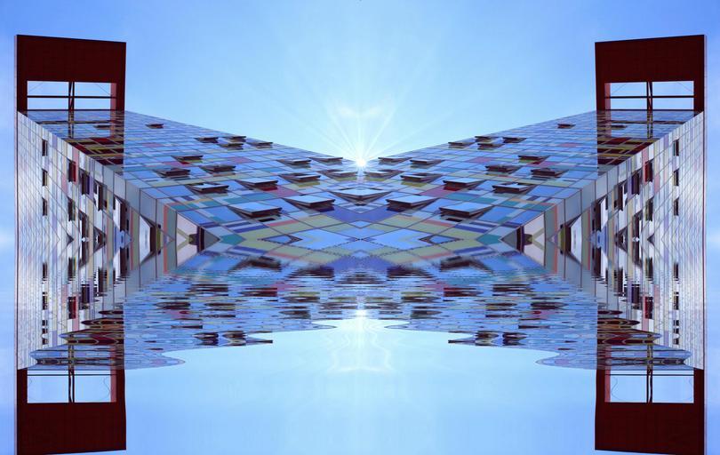 Keywords: architecture germany building home facade skyscraper modern window pattern design mirroring kaleidoscope glass window perspective düsseldorf sunbeam art game