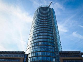 Keywords: architecture modern building skyscraper facade glass office building about mirroring bluish düsseldorf futuristic