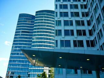 Keywords: architecture modern building skyscraper bluish facade düsseldorf lighting home