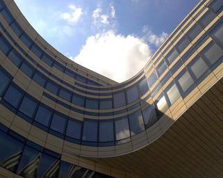 Keywords: architecture modern building facade düsseldorf bluish mirroring office building