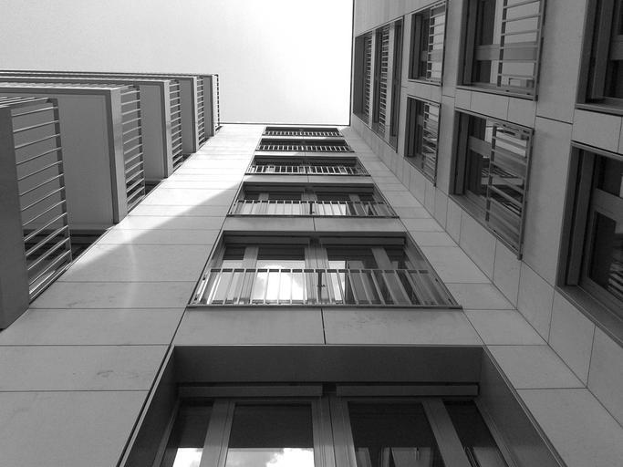 Keywords: architecture modern building facade düsseldorf window reinforced concrete black white