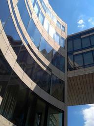 Keywords: architecture modern building facade düsseldorf bluish mirroring futuristic