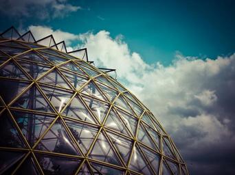 Keywords: architecture modern glass building facade abstract about biotope greenhouse sky clouds botanical garden düsseldorf