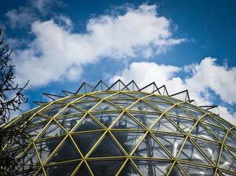 Keywords: architecture modern glass building facade abstract about biotope greenhouse sky clouds botanical garden düsseldorf