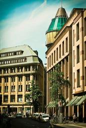 Keywords: architecture modern old building facade shopping centre purchasing shopping city urban road düsseldorf