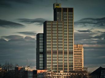 Keywords: architecture modern skyscraper building facade evening abendstimmung düsseldorf