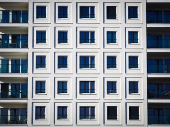 Keywords: architecture modern skyscraper building geometric facade düsseldorf bluish live window bowever