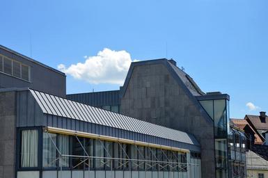 Keywords: architecture roof landscape glass mirroring cloud sky town home roofs downtown urban planning live and work sun shadow afternoon rest