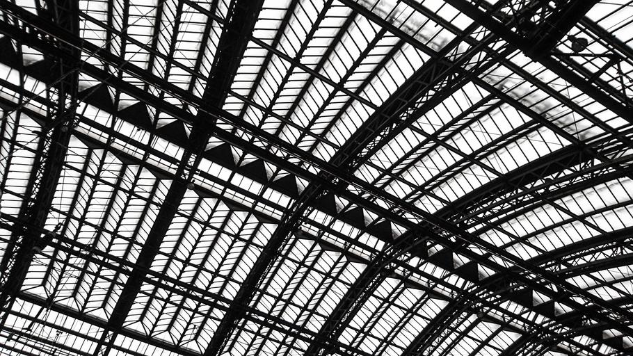 Keywords: architecture roof steel construction structures steel beams industry hall roof construction building glass railway station