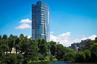 Keywords: architecture skyscraper glass facades skyline modern city facade sky building clouds skyscrapers window blue high glass big city glass front structure düsseldorf housewife urban home office building