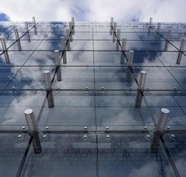 Keywords: architecture wall glass facade building façades modern reflection shopping mall kraków blue sky clouds