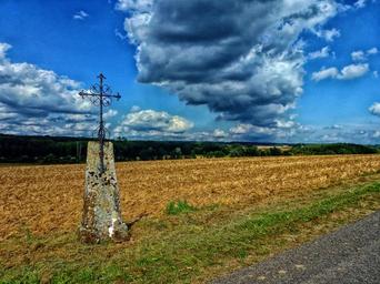 Keywords: ardennes france cross sky clouds landscape scenic field roadside religion faith hdr