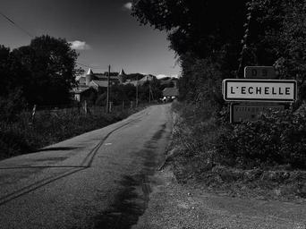 Keywords: ardennes france sign road black and white trees buildings town city nature outside countryside
