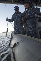 | Keywords: Ardent Sentry 2013 130515-N-IL267-016.jpg en Military hydrographer Lt Jose Gonzalez and Aerographer's Mate Airman Jahmal Moore of the Fleet Survey Team retrieve a side scan sonar device from the water after calibrating it aboard a seven-meter rigid hull inflatable boat in preparation for survey operations in support of Ardent Sentry 2013 Exercise Ardent Sentry is an annual NORAD and U S Northern Command USNORTHCOM exercise focused on Defense Support of Civil Authorities DSCA scenarios to support civil authorities when requested with military capabilities to save lives prevent human suffering and mitigate great property damage U S Navy photo by Mass Communication Specialist 1st Class Dustin Q Diaz/Released 2013-05-15 Petty Officer 1st Class Dustin Diaz https //www dvidshub net/image/933074 130515-N-IL267-016 2013-05-16 10 23 PARRIS ISLAND SC US PD-USGov-Military-Navy Ardent Sentry 2013 Exercise Ardent Sentry 2013 Images from DoD uploaded by Fæ |