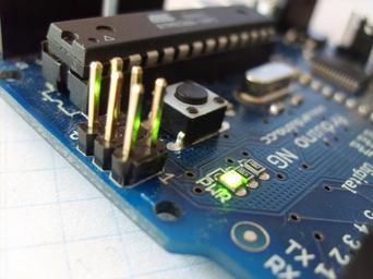| Keywords: Arduino led-4.jpg A green glowing SMD surface-mount device LED light-emitting diode on the Arduino NG board from http //www arduino cc/ arduino cc The LED is marked with PWR Own 2006-03-03 DustyDingo PD see below Image Arduino_led-2 jpg Image Arduino_led-3 jpg Arduino NG Light-emitting diodes SMD Serial Peripheral Interface |
