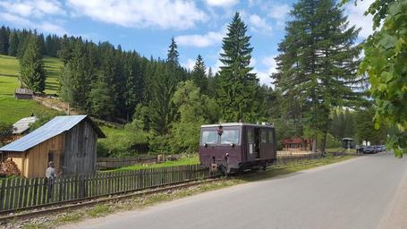 Keywords: Argel tourist train.jpg Argel Romania 2016-06-08 08 34 50 own Jan Pešula other versions 47 761388888889 25 470555555556 cc-zero Moldovița forest railway Argel Suceava Draisines of Romania