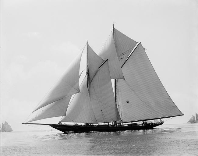 | Keywords: Ariel - LoC 4a15521.jpg Seawanhaka Corinthian Yacht Club Commodore's George H B Hill's steel schooner Ariel Archibald Cary Smith design buit in 1893 at the Harlan Hollingsworth shipyard Wilminton DE pictured on the day of the Newport to Cottage City leg of the New York Yacht Club annual cruise on August 11th 1894 which she won in her class http //query nytimes com/mem/archive-free/pdf res 980CE1DF1131E033A25751C1A96E9C94659ED7CF New York Yacht Times - Flukey run to Cottage City Reproduction Number LC-D4-21906 1894-08-11 det 4a15521 Creator John S Johnston PD-Detroit Photographs by John S Johnston Boats under sail Black and white photographs of yachts Ariel ship 1893 |