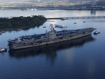 | Keywords: 020108-N-6234S-036 USS Carl Vinson (CVN 70).jpg en 020108-N-6234S-036 Pearl Harbor Hawaii Jan 8 2002 -- USS Carl Vinson CVN 70 renders honors as she passes by the Arizona Memorial in Pearl Harbor Hawaii The Carl Vinson and her battle group are stopping in Hawaii for a port visit before returning home after completing a regularly scheduled deployment in support of Operation Enduring Freedom U S Navy Photo by Chief Photographer's Mate Daniel E Smith RELEASED 2002-01-08 020108-N-6234S-036 Navy http //www navy mil/view_image asp id 515 U S Navy Photo by Chief Photographer's Mate Daniel E Smith PD-USGov-Military-Navy USS Carl Vinson CVN-70 at Pearl Harbor General views of USS Carl Vinson CVN-70 |