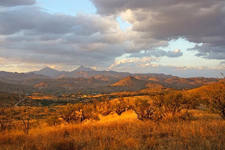 | Keywords: outdoor cloud sky field landscape mountain hill sunset foothill mountainside plain grassland serene mountain peak Patagonia Lake and Santa Rita Mts. Photoshopped with WATERCOLOR tool. Best appreciated at full screen size. Patagonia Lake and Santa Rita Mts. Photoshopped with WATERCOLOR tool. Best appreciated at full screen size. |