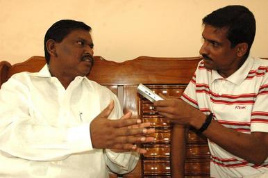 Keywords: Arjun munda Vijay.jpg en Chief Minister Arjun Munda giving interview to Vijay Deo Jha own Vijaydeojha 2010-09-11 Arjun Munda