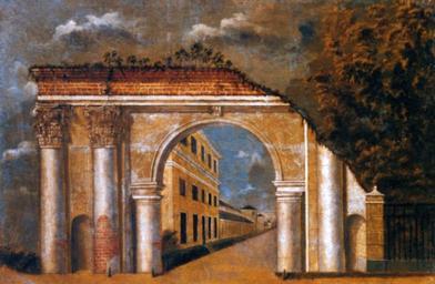 Keywords: Arkhangelskoye Ruin.jpg Руинные во ота в А хангельском http //arch-heritage livejournal com/365349 html начало XIX века аква ель неизвестного художника PD-art-100 Arkhangelskoe in art