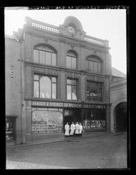 | Keywords: coop cooperative society cooperativesociety proni allison allison & co. photographers allisoncophotographers business service genealogy ancestry ulster armagh northern ireland northernireland blackandwhite monochrome photo border outdoor black and white Creator: H. Allison & Co. Photographers Date: c.1918 Original Format: Glass Plate Negative Description: Armagh & District Cooperative Society, Ltd. Shop front with four employees. PRONI Ref: D2886/W/Portrait/100 Copying and copyright: Please see www.proni.gov.uk/index/research_and_records_held/copying_... For Copy Orders, contact: Email: proni@dcalni.gov.uk For fees and charges see: www.proni.gov.uk/index/about_proni/are_there_any_fees_and... Creator: H. Allison & Co. Photographers Date: c.1918 Original Format: Glass Plate Negative Description: Armagh & District Cooperative Society, Ltd. Shop front with four employees. PRONI Ref: D2886/W/Portrait/100 Copying and copyright: Please see www.proni.gov.uk/index/research_and_records_held/copying_... For Copy Orders, contact: Email: proni@dcalni.gov.uk For fees and charges see: www.proni.gov.uk/index/about_proni/are_there_any_fees_and... |