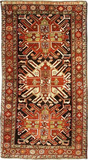 | Keywords: Armenian rug , No. 2747-5.jpg en Armenian rug No 2747-5 2014-01-19 01 32 39 http //carpets iworldarmenia com/imgs/carpets/2747-5 png author Ornament frameless en http //carpets iworldarmenia com/en/carpets/25/ Armenian dragon rug Jraberd 1899 village of Brnakot Sisian Armenia 230x130 cm 36 x 30 nodes <br>Three large rectangular rosettes with beamed edges are woven on the black carpet field The concentric cross-shaped axes of the rosettes are ornamented with feather-shaped claw-like and floral images There are paired bird-like images depictions of pomegranates and flowers between the rosettes The edge band has two narrow stripes decorated with leaf-like patterns and a wide band with a chain of lozenges ornamented with swastikas The upper end has an Armenian inscription in red on a light cinnamon foundation The carpet has a flat-woven part and short fringes ru http //carpets iworldarmenia com/ru/carpets/25/ А мянский вишапаго г Дж абе д 1899 год село Б накот Сисиан 230x130 см 36 x 30 узлов<br> а че ном фоне п едставлены т и больших п ямоугольных медальона в лучистом конту е в цент е кото ых находится к естооб азная фигу а отделанная астительными о наментальными мотивами а также мотивами пе ьев и когтей Внут и медальонов асполагаются также исунки птиц г анатов цветов Об амление состоит из двух узких поясов один из кото ых ук ашен листиками д угой омбами в конту е со спи альными завитками В ве хнем поясе по светло ко ичному фону идет а мянская надпись Кайма - ка петной вязки с ко откой бах омой hy http //carpets iworldarmenia com/am/carpets/25/ Վիշապագո գ Ջ աբե դ 1899 թիվ գյուղ Բռնակոթ Սիսիան այաստան 230x130 սմ 36 x 30 հանգույց։<br>Դաշտի սև հիմնագույնի մեջ բանված են ե եք խոշո ճառագայթաձև եզ ե ով ուղղանկյուն վա դյակնե ո ոնց համակենտ ոն խաչադի առանցքնե ը զա դանախշված են փետ աձև մագիլաձև բուսական պատկե նե ով Վա դյակնե ի միջև զույգ-զույգ թռչնակե պե նռնե ծաղկապատկե նե կան։ Եզ ագոտին ունի ե կու նեղ տե ևանման մեկ լայն կեռխաչե ով շեղանկյուննե ի շղթայով նախշազա դ շե տե ։ Վե ին եզ ին բաց դա չնագույնի մեջ կա մի ով հայե են ա ձանագ ություն Ունի կա պետահյուս մաս կա ճ ծոպե ։ PD-Art-100 Armenian rugs and carpets Uploaded with UploadWizard Armenian rugs and carpets with Swastikas |