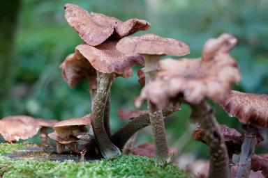 Keywords: armillaria mellea mushrooms brown scaly ring büschelig lamellar moss forest forest pest nature macro