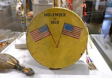 | Keywords: Armistice Day hand drum, United States, c. 1918, rawhide, steel, copper, cotton, paint - Spurlock Museum, UIUC - DSC05921.jpg en Exhibit in the Spurlock Museum University of Illinois at Urbana-Champaign - Urbana-Champaign Illinois USA This work is old enough so that it is in the public domain 2015-06-14 16 07 02 own Daderot other versions cc-zero Indigenous art of the Americas in the Spurlock Museum Armistice Day United States Hand drums | ||||
