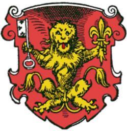 | Keywords: Arms of Sebastian Schärtlin von Burtenbach.png Wappen des Landsknechthauptmann Sebastian Schärtlin Schertel von Burtenbach In Rot ein ” gekrüpfter ” sitzender doppelschwänziger goldener Löwe en face einen silbernen Schlüssel und eine entwurzelte goldene Lilie in den Pranken haltend Fig 310 ” Arms of Sebastian Schärtlin von Burtenbach Gules a lion sejant affronté erect double-queued holding in its dexter paw a key argent and in its sinister a fleur-de-lis The arms typify his victorious assault on Rome in 1527 and his striking successes against France in 1532 Complete Guide to Heraldry Fig310 png coloring own 1589 Wappen und Stammbuch 1899 Heraldischer Atlas; 1909 A Complete Guide to Heraldry; this colored version 2014-12-1 creator Jost Amman <gallery showfilename> Ströhl Heraldischer Atlas t08 1 jpg Complete Guide to Heraldry Fig310 png </gallery> PD-old-100 PD-Gutenberg Lions sejant in heraldry Keys in heraldry Fleur-de-lis in heraldry Complete Guide to Heraldry book Single images from Heraldischer Atlas Ströhl Coats of arms of Schertlin von Burtenbach family |