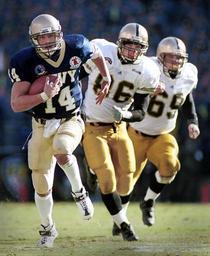 | Keywords: 001202-N-1539I-002 Navy Football Game.jpg en 001202-N-1539I-002 BALTIMORE Maryland December 2 2000 -- Navy senior quarterback Brian Broadwater breaks away from Army defensive end Zac Hurst 86 and tackle Randy Mitchell 69 Broadwater led the Navy in rushing with 121 of the Navy's 300 yards leading Navy to a 30-28 victory over the Army's Black Knights at Baltimore's PSI Net Stadium U S Navy photo by Photographer's Mate Airman Saul Ingle RELEASED 2000-12-02 001202-N-1539I-002 Navy http //www navy mil/view_image asp id 391 U S Navy photo by Photographer's Mate Airman Saul Ingle PD-USGov-Military-Navy Images from US Navy location BALTIMORE Md 2000 Army-Navy Game December 2000 photographs People of the United States in 2000 Males with American football helmets Men with American football balls |