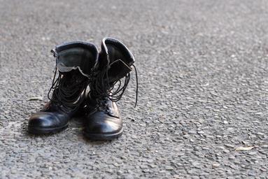 Keywords: army boots worn leather black shoes footwear pair pair of boots military fashion