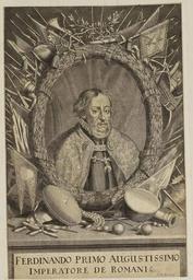 | Keywords: Arolsen Klebeband 01 013.jpg Grafik aus dem Klebeband Nr 1 der Fürstlich Waldeckschen Hofbibliothek Arolsen Motiv Kaiser Ferdinand I http //digi ub uni-heidelberg de/fwhb/klebebaende century 17 Johann Alexander Böner Public Domain due to age The scan is also licensed CC-BY-SA 3 0 DE PD-old-100 Arolsen Klebeband 1 Ferdinand I Holy Roman Emperor Johann Alexander Böner |