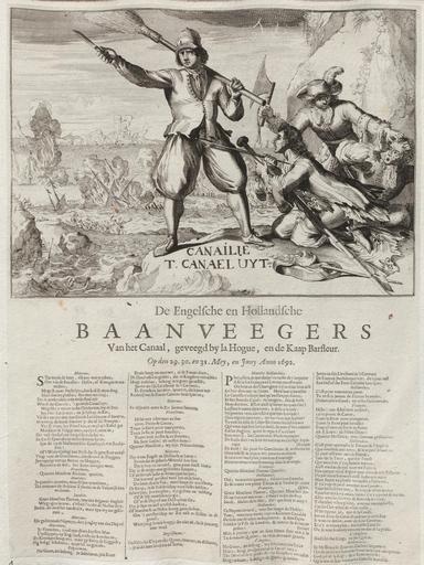 | Keywords: Arolsen Klebeband 18 085.jpg  Grafik aus dem Klebeband Nr 18 der Fürstlich Waldeckschen Hofbibliothek Arolsen Motiv Spottflugblatt zur französischen Niederlage in den Seeschlachten von Barfleur und La Hougue De Engelsche en Hollandsche Baanveegers Van het Canaal geveegd by la Houge en de Kaap Barfleur Op den 29 30 en 31 Mey en Juny Anno 1692 http //digi ub uni-heidelberg de/fwhb/klebeband18 1692 possibly after Romeyn de Hooghe after Public Domain due to age The scan is also licensed CC-BY-SA 3 0 DE https //www rijksmuseum nl/nl/collectie/RP-P-OB-82 777 Rijksmuseum http //www britishmuseum org/research/collection_online/collection_object_details aspx objectId 1564530 partId 1 British Museum PD-old-100 Arolsen Klebeband 18 Single sheet prints 1692 engravings Street sweepers in art Engravings by Romeyn de Hooghe Battle of La Hougue Battle of Barfleur |