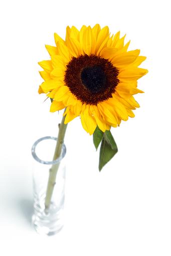 Keywords: arrangement bloom blossom color colors decoration floral flower nature pattern sunflower table vase yellow isolated white background
